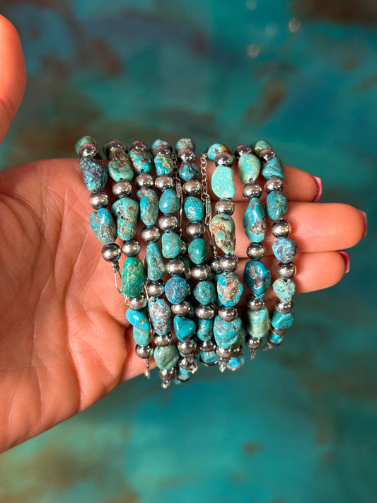 Sterling Silver & Blue Turquoise Nugget Bracelet –