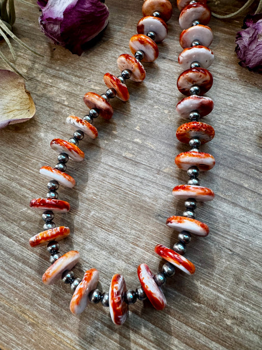 Spiny Oyster Heishi & Sterling Silver Pearl Choker