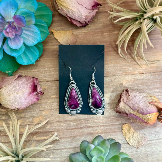 56 - Sterling Silver Purple Spiny Oyster Dangle Earrings by Shay Pfeiffer