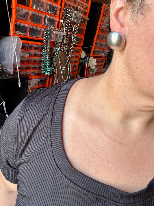 Large 30mm Sterling Silver Saucer Pearl Stud Earrings – USA Made