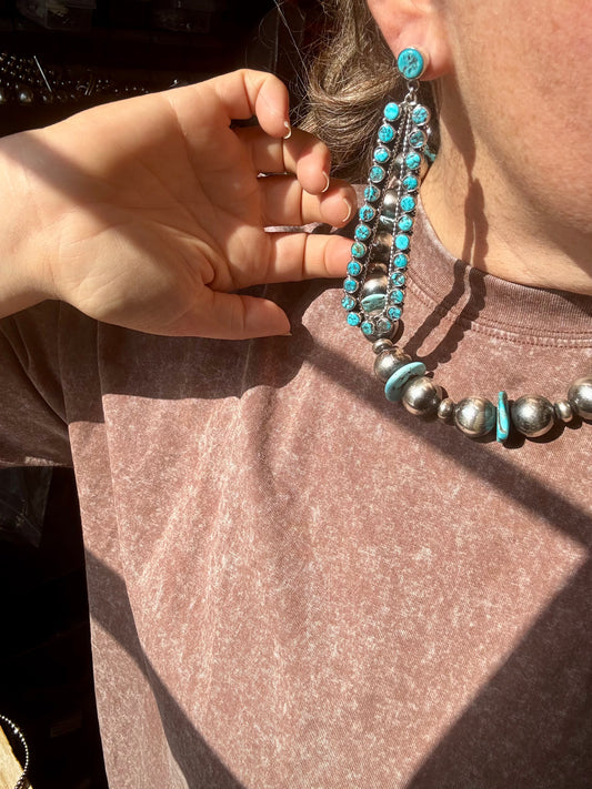 Sterling Silver Kingman Turquoise Long Stud Earrings