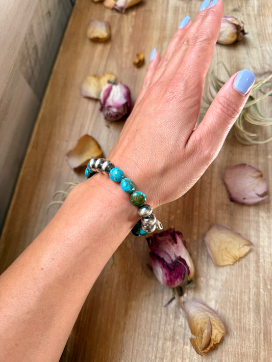 African Turquoise & Sterling Silver Pearl Bracelet – 3mm