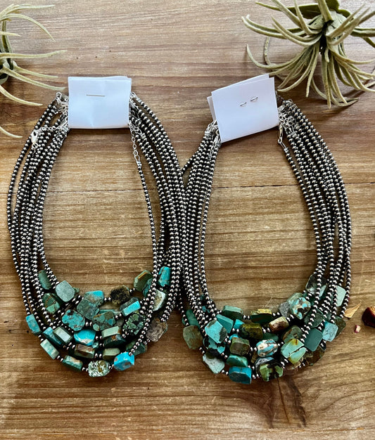 16 inch long necklace with saucer Sterling Silver Pearls and turquoise Variscite