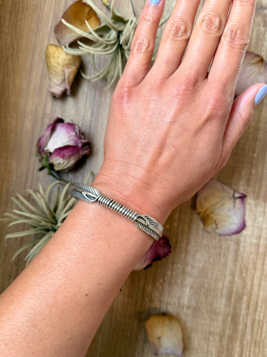 Sterling Silver Hudson Feather Cuff – Fits 6” Wrist – Handmade by Artist Jason Ogg