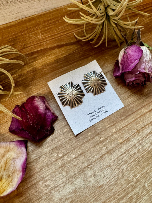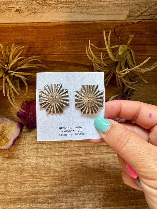 Square Cross Stud Earrings with Longhorn Skull – Sterling Silver