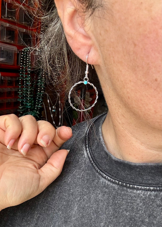 Sterling Silver Small Hoop Earrings with Kingman Turquoise