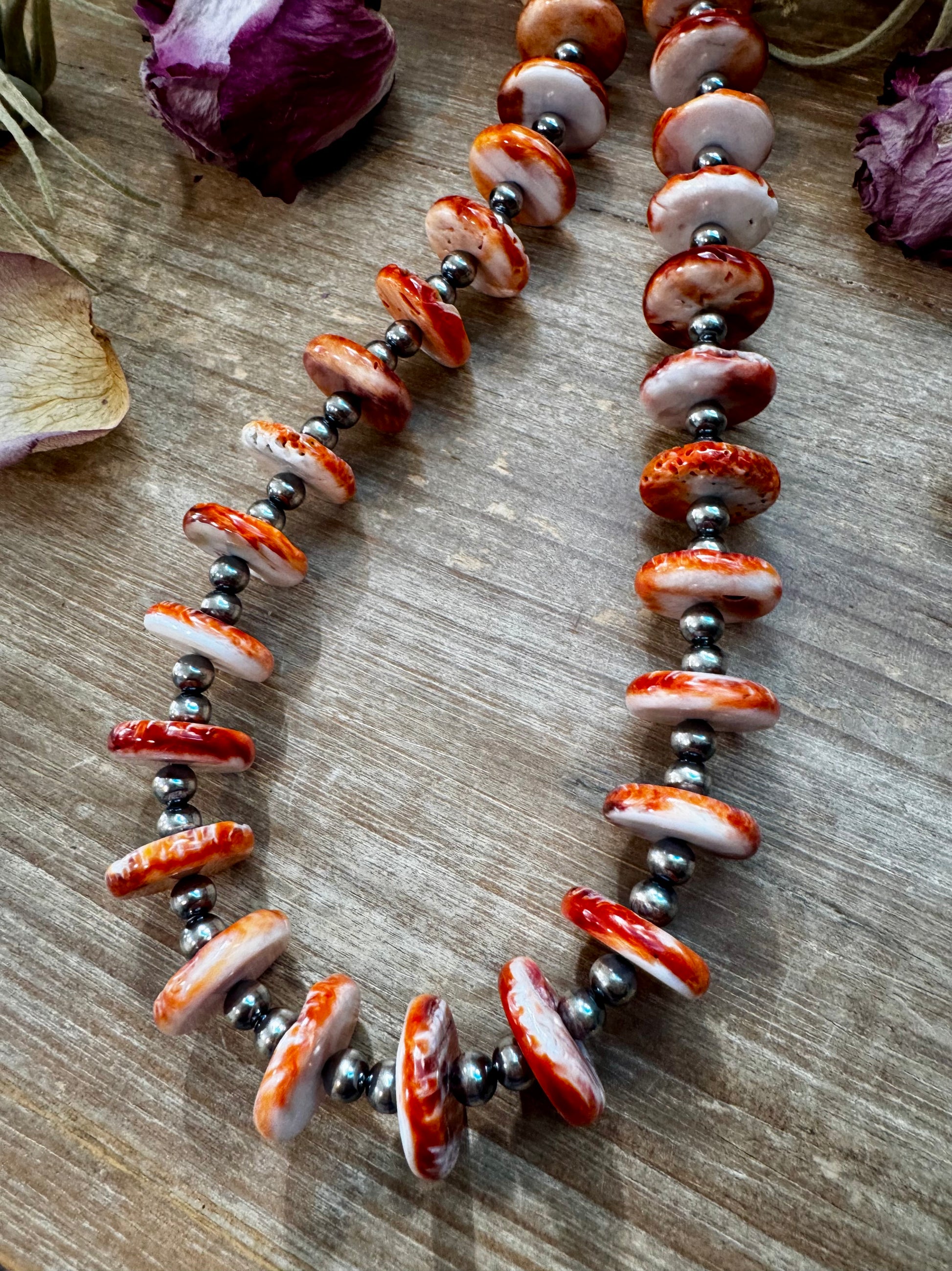 From our exclusive NFR Collection, this handcrafted long necklace by The Bijoux FAB is both elegant and bold. Measuring 38 inches long, it features 6mm sterling silver pearls paired with a vibrant 16mm orange spiny oyster bead that adds the perfect pop of Western color. Finished with a non-tarnish hook, this piece is designed for a long, layering effect — beautiful worn solo or stacked with shorter necklaces for a striking statement. Only one was made.