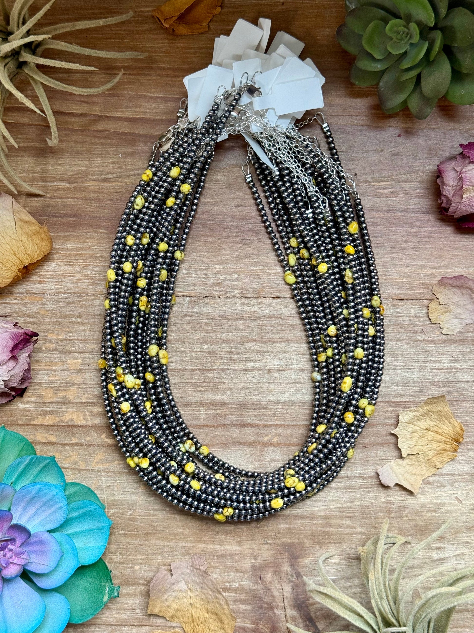 This beautiful 15 inch necklace is handcrafted with palomino turquoise beads paired with 3mm sterling silver pearls. Finished with an extender for adjustable length and comfortable wear, this necklace offers a soft natural tone that is easy to wear alone or layered.