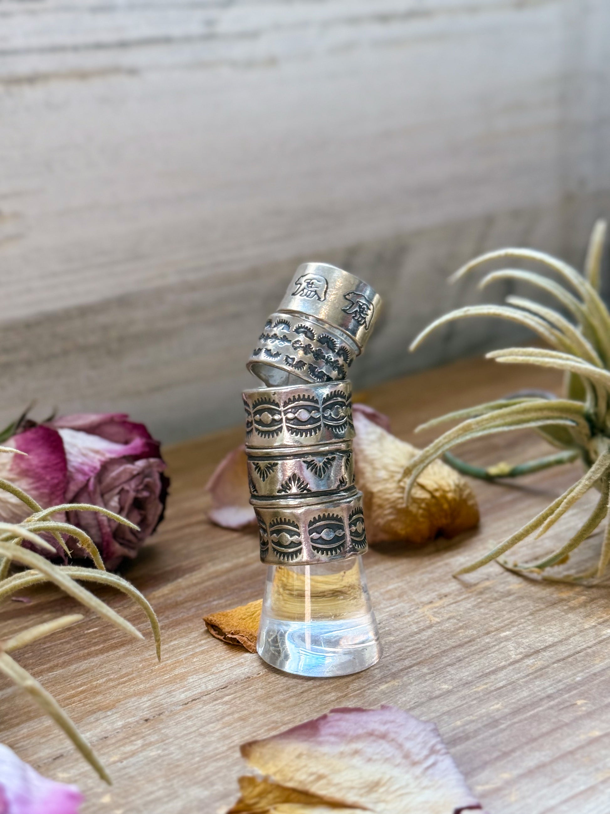 Sterling Silver Hand-Milled Wide Band “Poke the Bear” Stamped Ring – Size 5.5 – Handmade by Artist Jason Ogg