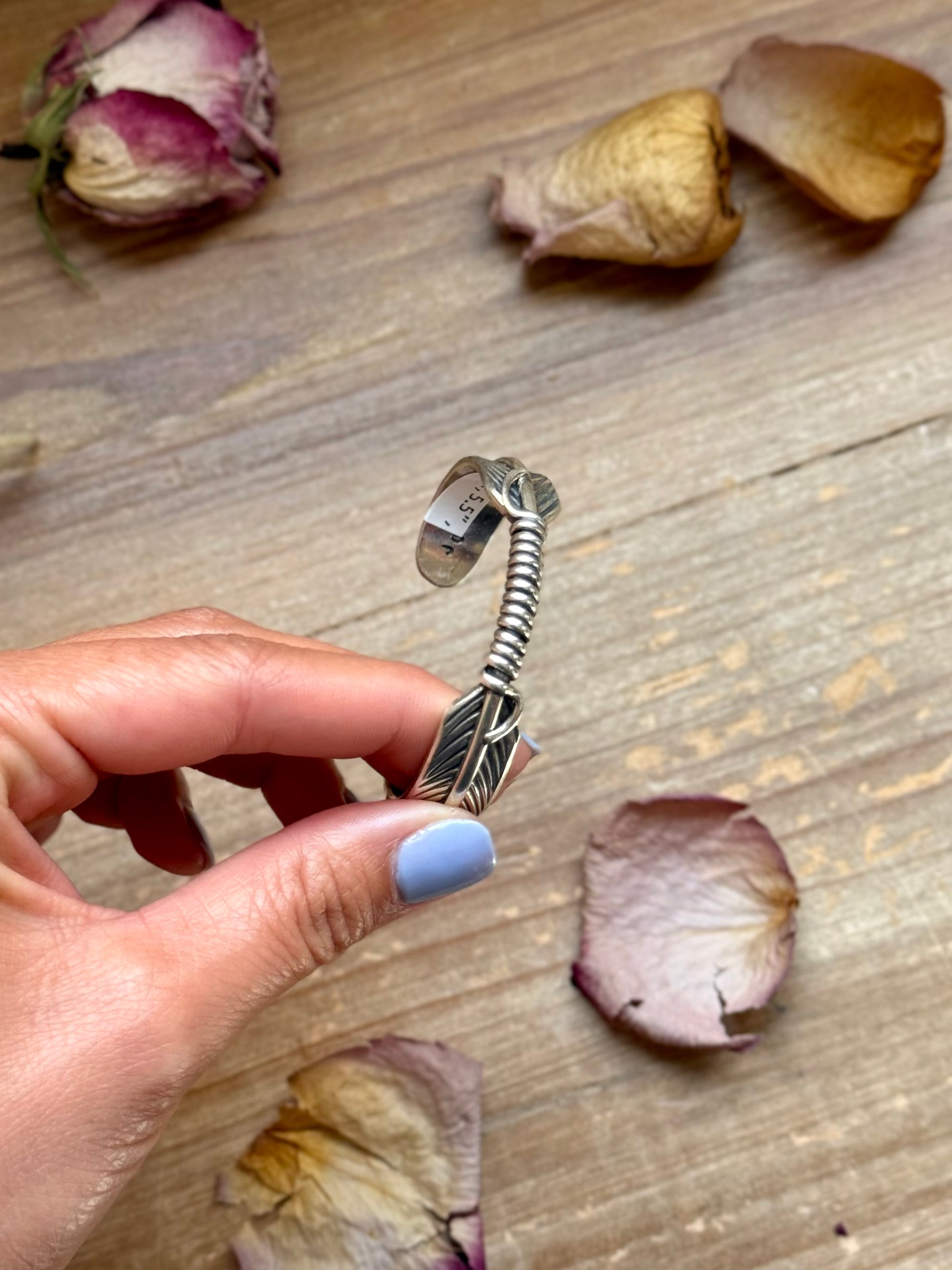 Solid sterling silver Hudson Feather cuff